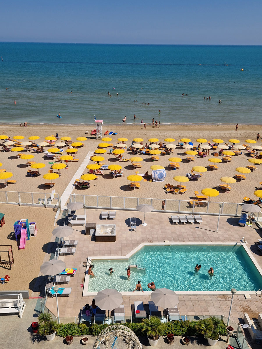 All’Hotel Casadei il tempo sembra rallentare, cullato dal ritmo dolce delle onde. Situato direttamente sulla spiaggia di Torrette Fano, città di Vitruvio, è il luogo dove il mare non è solo un panorama, ma una presenza costante che accompagna ogni momento della giornata.
