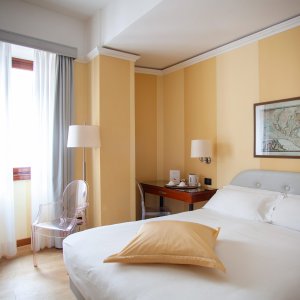 È un albergo di dimensioni contenute, dove la relazione con l’ospite resta diretta e naturale. Le camere, curate e silenziose, offrono un rifugio nel centro della città, mentre gli spazi comuni e la qualità del servizio riflettono un’idea precisa di accoglienza.